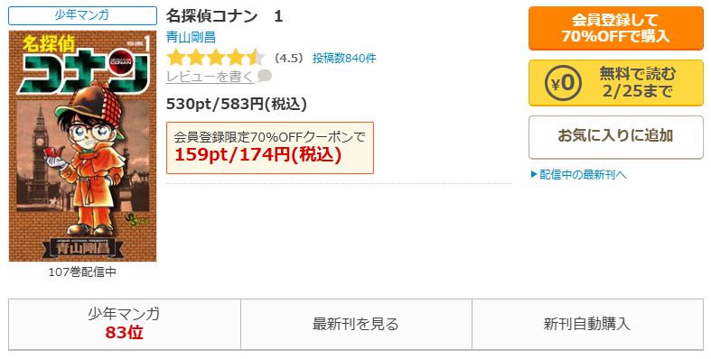 ただし、「名探偵コナン」は各電子書籍サイトでもらえるクーポンやポイント還元、セールなどを利用してお得・実質無料で読むことも可能です。