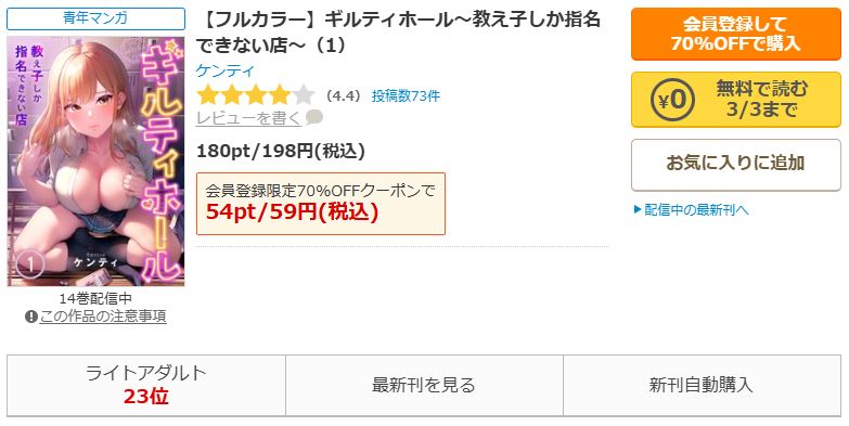ただし、「ギルティホール」は各電子書籍サイトでもらえるクーポンやポイント還元、セールなどを利用してお得・実質無料で読むことも可能です。