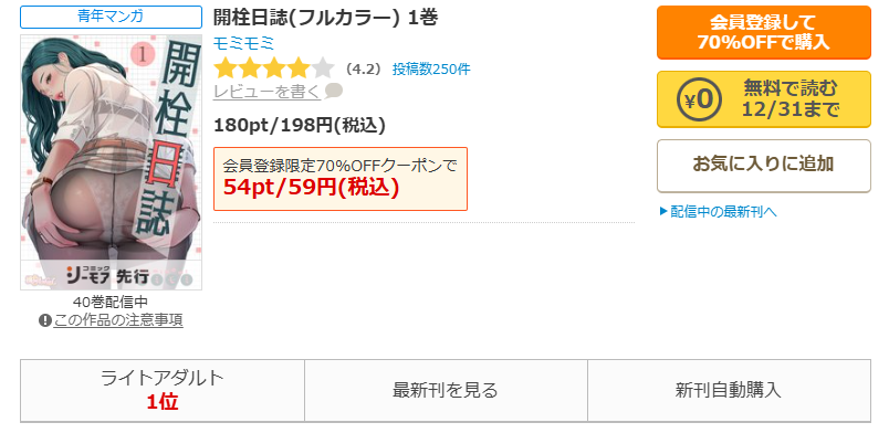漫画の購入やコミックシーモアへの加入に迷っている人は、「開栓日誌」を購入する前に全巻無料立ち読みもOK!